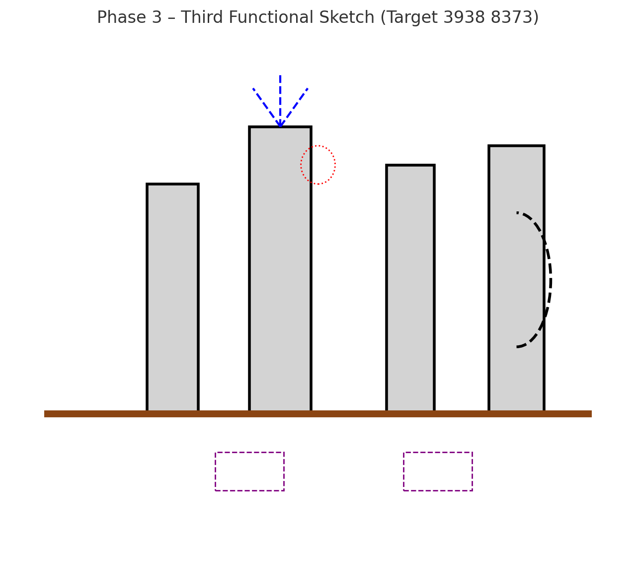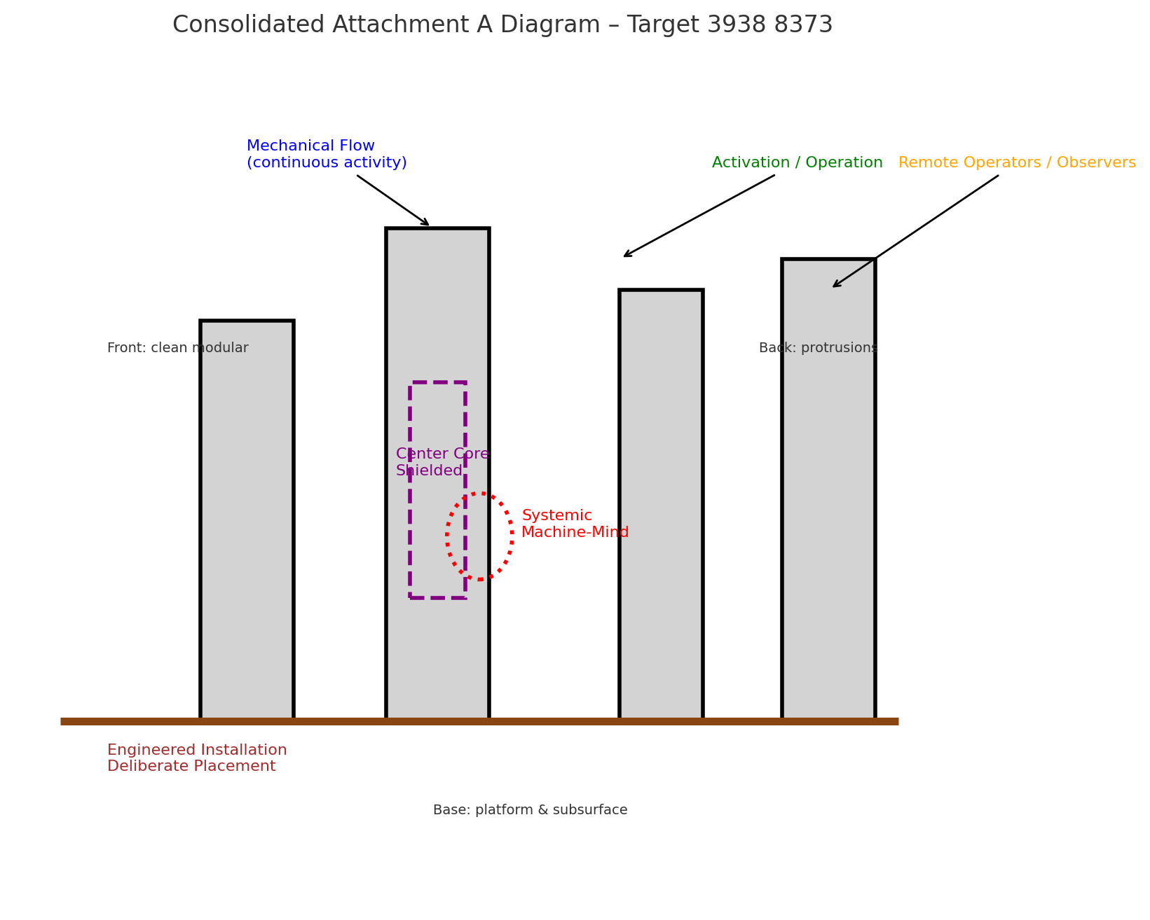 Target 3938 8373 appears to be a functional, engineered installation, consisting of multiple modular towers on a controlled platform, running a continuous energetic system.