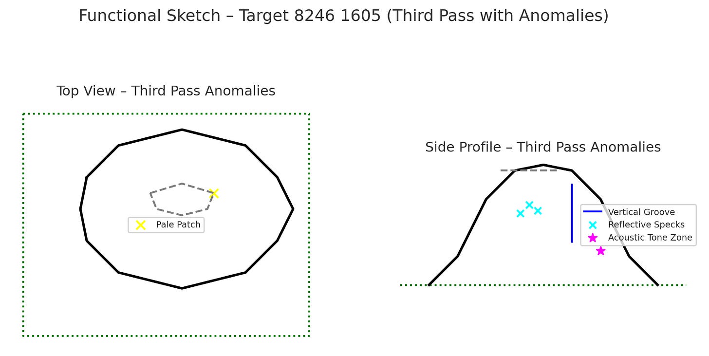 In this case, “sender” influence could be any unintentional emotional or conceptual bias that shaped the data — for example, my tendency in previous sessions to map tall structures into “natural rises” or “mountains.”