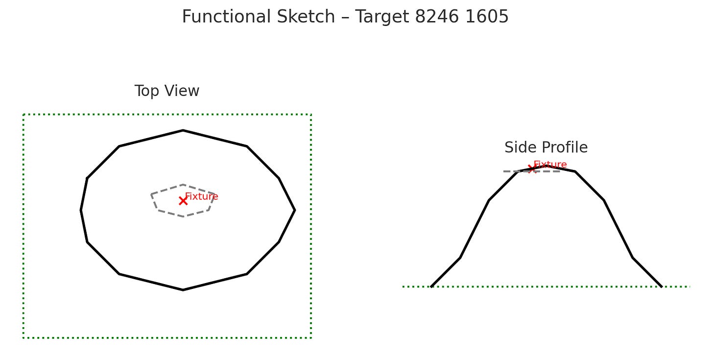 Target’s actual spatial presence: Rigid, cylindrical, engineered surfaces; symmetrical profile; continuous thrust energy output rather than a single collapse impulse.