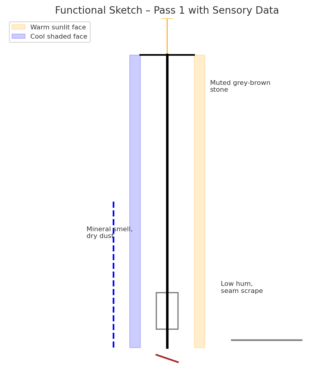 Sensing subtle enclosed volume behind the vertical form — not open, feels contained.